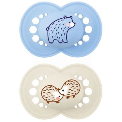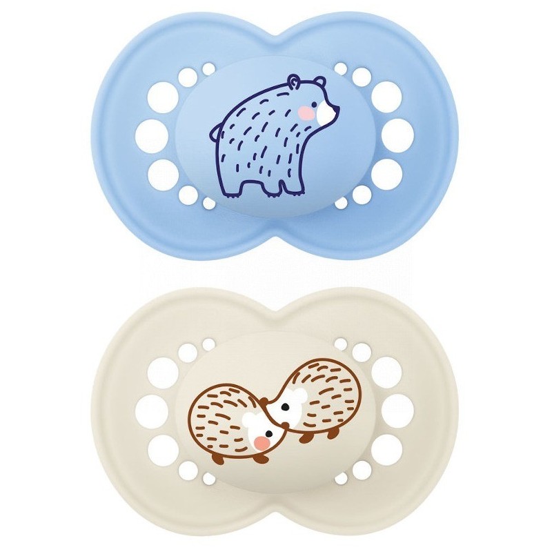 Forma curvada para un máximo confort. Cuidadoso con la piel gracias a los grandes orificios de aire y a los hoyuelos exclusivos de MAM en el interior.