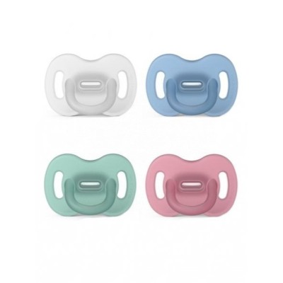 Con textura suave y flexible, evita marcas en la carita del bebé, siendo perfecto para dormir. La anilla inclinada no molesta durante el sueño, y los orificios de ventilación garantizan una buena circulación de aire y evitan acumulación de saliva. La tetina de silicona es resistente, indeformable y mantiene su color y olor inalterados.