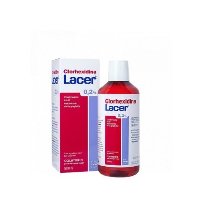 Lacer Clorhexidina 0,2 % colutorio (0,2% clorhexidina digluconato): Aqua, Glycerin, Propylene Glycol, PEG-40 Hydrogenated Castor Oil, Xylitol, Chlorhexidine Digluconate, Poloxamer 407, Potassium Acesulfame, Aroma, Menthol, Sodium Saccharin, Neohesperidin Dihydrochalcone, Lactic Acid, CI 16185, CI 15985, Limonene.