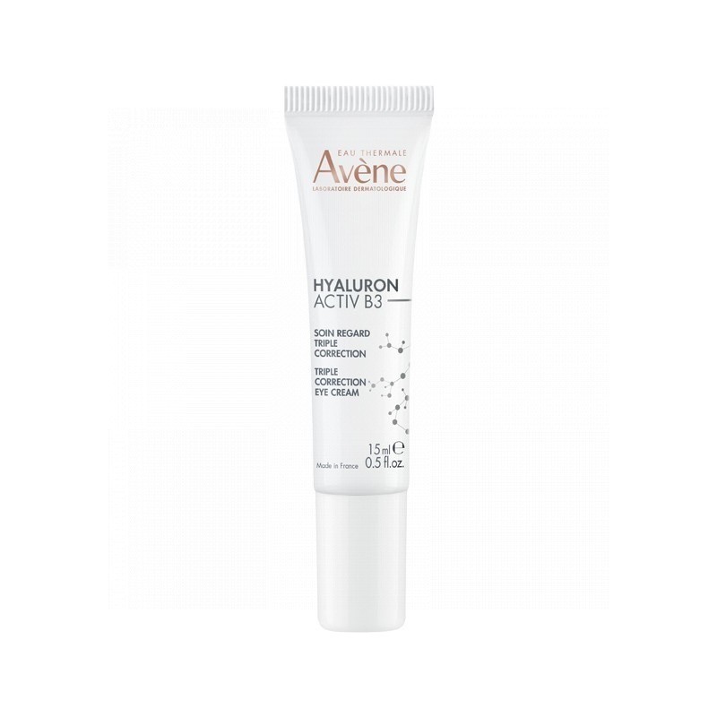 Con la edad todo se acelera. Las células envejecidas se extienden y la piel funciona a cámara lenta. Los laboratorios dermatológicos Avène han creado el contorno de ojos Hyaluron Activ B3, que contiene sulfato de dextrano, ácido hialurónico puro (de alto y bajo peso molecular) y niacinamida (6 %) para actuar sobre la causa del envejecimiento y prolongar la vida de las células*. El contorno de ojos triple corrección Hyaluron Activ B3 es un producto ecoconcebido que contiene un 93 % de ingredientes de origen natural, no derivados de animales. Su textura en gel-crema proporciona un efecto refrescante inmediato. El contorno de ojos está más firme. Las arrugas, las bolsas y las ojeras atenúan. Sin perfume, este producto es adecuado para el contorno de los ojos, incluso los sensibles, así como para el contorno de los labios. También es una buena prebase para el maquillaje.