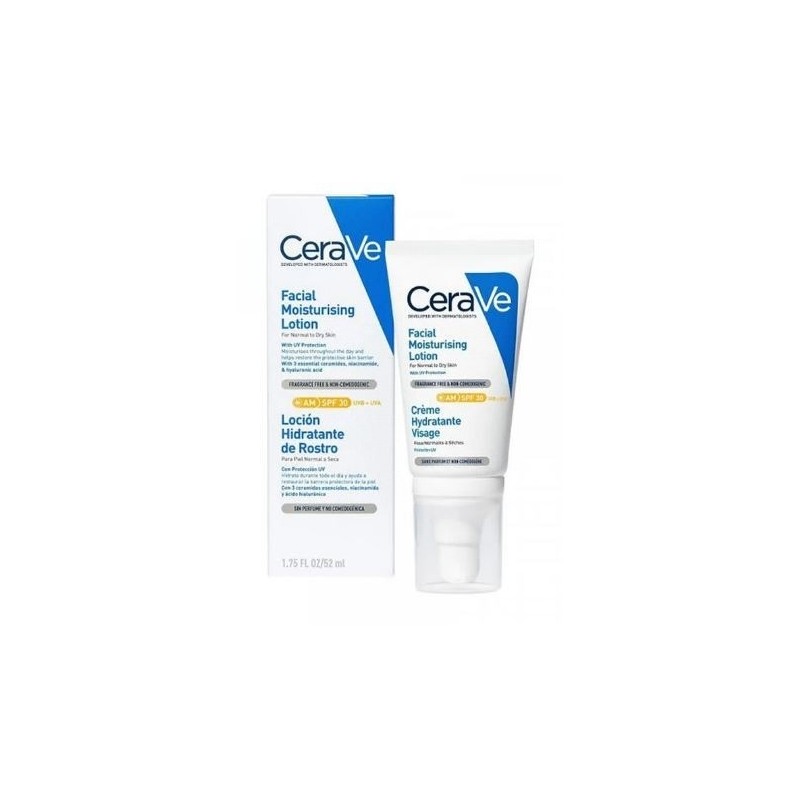 Fotoprotección de amplio espectro con SPF30 que proporciona protección contra los rayos UVA y UVB mientras la fórmula hidrata y ayuda a reparar la barrera protectora de la piel del rostro. Se aplica con facilidad y se seca con un acabado limpio.
