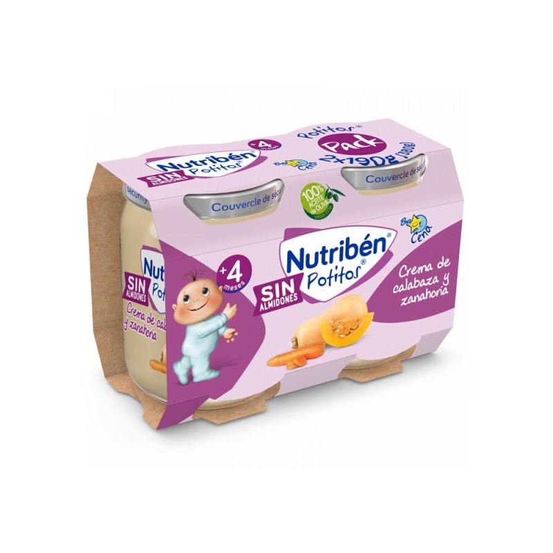 Cena perfecta para tu bebé: Potito con ingredientes 100% naturales. Puré de calabaza, zanahorias, patatas, arroz y aceite de oliva virgen extra, sin gluten, huevo, lactosa, almidones, conservantes ni colorantes. Ideal para una alimentación equilibrada y saludable desde los 4 meses.